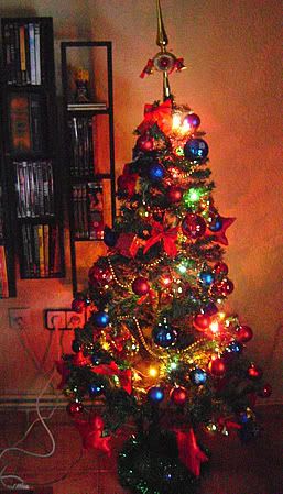 Family Tree ^ ^ It's not like the Malfoys or like Paris Hilton, but has everything. This year, in red (balls and stars), Blue (balls), yellow (and things hanging bells) and Green (foot tinsel).